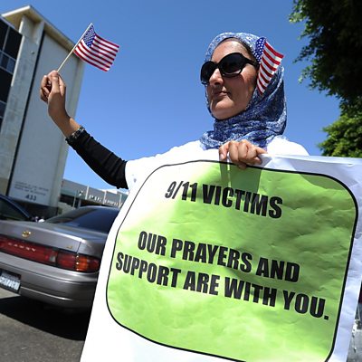 In the Aftermath of the Al Qaeda attacks against America on September 11th 2001, many Muslims living in the US had their allegiance to America questioned. In the days after 9/11 all over America hate crimes against Muslims and anyone perceived to be Muslims soared. In 2001, according to crime statistics by the FBI, hate crimes against Muslims and Arabs in the US increased by 1,700 percent. Stories about Muslim women in hijabs and Muslim men with beards being attacked became commonplace. Farhana Haider has been speaking to Kevin James, a Muslim first responder who was at Ground Zero in New York immediately after the attacks. Photo: Nadia Nawaz holds a sign remembering the victims of the attack. Credit: ROBYN BECK/AFP via Getty Images