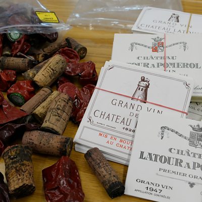In the early 2000s, Rudy Kurniawan was a newcomer to the hedonistic world of wine auctions in the US. He quickly became well-known for his warm and friendly manner and his profligate spending on wines. But where was all his money coming from? Josephine Casserly tells the story of one of the most high profile cases of wine fraud and speaks to Laurent Ponsot, French winemaker, turned Sherlock Holmes. (Photo: Corks, foil capsules and wine labels used as evidence in the trial. Credit: Stan Honda/Getty Images)