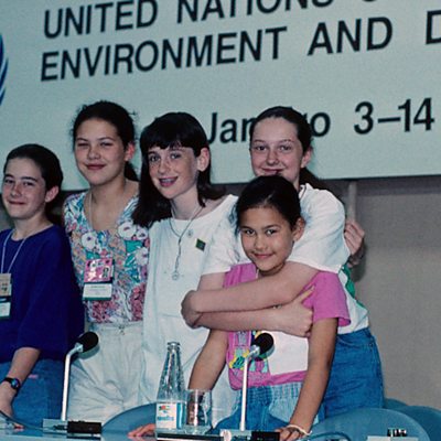 Long before Greta Thunberg, there was 12-year-old Severn Cullis-Suzuki, the girl who stood in front of world leaders and implored them to take action to save our environment. Speaking at the 1992 UN Earth Summit in Rio De Janeiro, Severn caught the attention of the media with her passion and anger. Severn has been speaking to Phil Marzouk about her feelings then and how they’ve changed over the intervening decades. Photo: Severn Cullis-Suzuki (2nd left) and her friends at the Earth Summit in Rio in 1992. Courtesy of Severn Cullis-Suzuki.