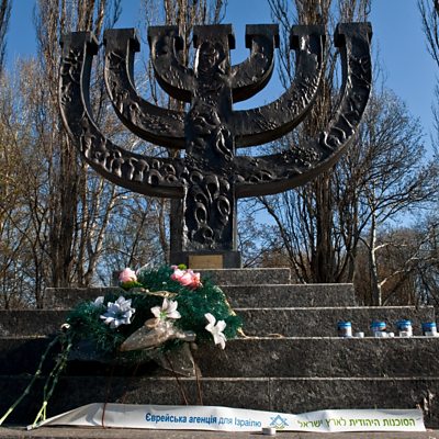 During World War Two, Ukraine was occupied by Nazi Germany and on 29th September 1941, the organised massacre of Ukrainian Jews began. In the capital Kyiv, most of the victims were taken to a ravine on the outskirts of the city called Babi Yar, and shot. In 2011, David Stern spoke to Raissa Maistrenko, who escaped the shooting as a three-year-old girl, and to Rabbi Alexander Dukhovny, whose mother survived the Holocaust outside the city. PHOTO: The memorial at the Babi Yar site near Kyiv (Getty Images)