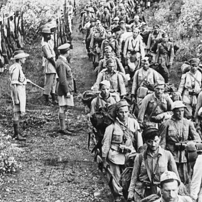 In 1941, Italian colonial rule in East Africa ended when Mussolini’s soldiers made a dramatic final stand in the northern Ethiopian town of Gondar. After a bloody battle, General Guglielmo Nasi surrendered to troops from the British empire and Ethiopian fighters loyal to Emperor Haile Selassie. Simon Watts listens to an account in the BBC archive from Rene Cutforth, who was then a British army officer and later became a distinguished BBC war correspondent. PHOTO: Italian soldiers surrendering in the build-up to the Battle of Gondar (Getty Images)