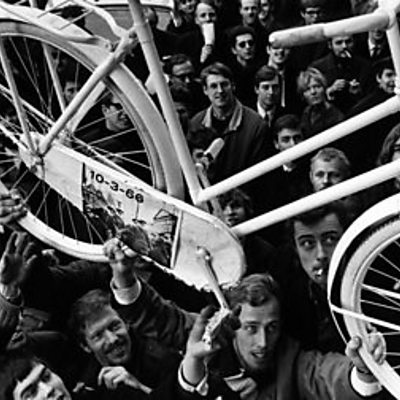 In the mid-1960s a Dutch engineer called Luud Schimmelpennink came up with a scheme to share bikes, and cut pollution. He collected about ten old bicycles, painted them white and left them at different points around Amsterdam. The first scheme didn't last, but it was hugely influential and became part of popular culture; Luud Schimmelpennink himself would go on to invent an early computerised sharing scheme for cars, and to consult on the bike-sharing schemes we see around the world today. In 2019, he spoke to Janet Ball. Photo: Activists with one of the original white bikes from the first scheme. Credit: Luud Schimmelpennink.