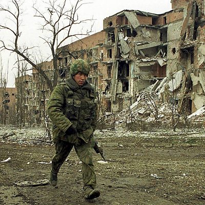 When Vladimir Putin was appointed prime minister in August 1999, he was a political unknown. He quickly made his name by ordering Russian Federation forces to re-take control of the breakaway republic of Chechnya, which just years earlier had fought and won autonomy from Moscow. It would herald the start of a brutal conflict known as the Second Chechen war. We hear an eyewitness account of the war and its brutal aftermath. Photo: A Russian soldier walks through the streets of the destroyed Chechen capital Grozny, February 25, 2000. (Photo by Oleg Nikishin/Getty Images)