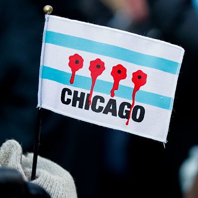 History and geography have conspired to give the city of Chicago an unenviable reputation for guns and gangs, but what will it take to bring the murder rate, which rose 55 per cent last year, down? Low conviction rates and an unwillingness on behalf of witnesses to give evidence play their part in the problem. But others think the time has come to treat murder like any other deadly disease that afflicts the poor. Charmaine Cozier examines the reasons for the city’s stubbornly high murder rate and the options to stop the killing. Produced by Nathan Gower. (a small flag depicting bullet holes at an anti-gun violence march in Chicago Dec.31 2020. Credit: Kamil Krzaczynski /Getty Images)