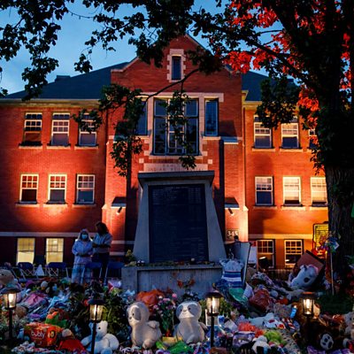 The recent discoveries of unmarked graves at the sites of so-called Indian Residential Schools has put Canada’s treatment of its indigenous peoples back under the spotlight. For more than a century, tens of thousands of children were forced by the state into a religious school system that split families and brutalised the children in its care. Tanya Beckett looks at the history of the residential schools and asks why so many children died there. Producer: Rob Cave and Olivia Noon (former Kamloops Indian Residential School, British Columbia, Canada, 2 June 2021. Credit: Cole Burston/Getty Images)