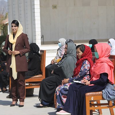 The BBC Media Action team in Afghanistan recently went on the road with their programme Open Jirga to hear about women’s hopes and fears for any peace deal between the Afghan government and the Taliban. Presenter Shazia Haya heard from the ambitious young women of Herat’s all-female robotics team, and from women in the Taliban heartland city of Kandahar who risked their lives to have their voices heart. Baghdad's graffiti artists A group of graffiti artists in the Iraqi capital Baghdad have been painting murals and portraits in poor, rundown areas of the city. The artworks feature famous people and local folk heroes, as BBC Arabic’s Haddad Salih explains. Who is the new president of Tanzania? President Samia Suluhu Hassan took office less than two months ago after the sudden death of her predecessor, John Magufuli. She has already shown a very different style of leadership. Zuhura Yunus of BBC Swahili introduces us to Tanzania's first female president. Egypt's female folk singers Folk music in Egypt has traditionally been the domain of men. But an all-female folk group called Tablet El Sitt, 'the woman's drum', is reviving old songs sung by and about women. Aya Hashim of BBC Arabic has been investigating. A short walk in the Russian woods Another chance to hear Oleg Boldyrev of BBC Russian enjoying last year's Spring lockdown in the company of fallen trees, fungi, and beaver dams. Image: 'Open Jirga' presenter Shazia Haya with all female audience in Kandahar Credit: BBC Media Action