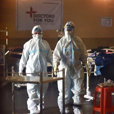 Dr Solelwa Sifumba in Johannesburg, South Africa, recently left the profession after experiencing such chronic anxiety that it even led to her considering taking her own life. She is joined by two fellow doctors in the UK, as they discuss burnout and the mental health challenges of working in constant crisis mode since the pandemic began. They tell host Nuala McGovern about the difficulty in their profession to say they are not ok. We also talk to two therapists in the United States and UK. They offer their professional view of the situation and discuss potential solutions; and they explain how the challenges for healthcare workers, and doctors, in particular, began long before the arrival of the pandemic. (Photo: Doctors wearing Personal Protective Equipment (PPE) walk after examining patients inside a Covid-19 care centre and isolation ward facility near a Hospital in New Delhi, India, 10 May 2021 Credit: Idrees Mohammed/EPA)