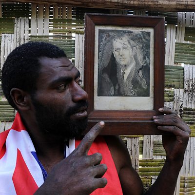 Villagers believe Prince Philip is returning to his ancestral home on their Pacific island. In a handful of villages on the island of Tanna, in Vanuatu, he has been revered as an ancestral spirit and son of their mountain god, and they have been waiting for him to return to them, either in person during his lifetime or in spirit form after his death. The prince never visited the island of Tanna, but letters, photographs and gifts were exchanged over the years and the prince met a delegation of islanders at Windsor Castle in 2007. Tanna elders sent Prince Philip a "nal nal" pig hunting club. He sent them back a picture of himself holding the club, which the villagers cherish. It is thought the religious movement started after the 1974 royal tour of the Pacific, during which the Queen and Prince Philip visited Vanuatu, then known as the New Hebrides. Presenter: Jo Dwyer (Photo: Sikor Natuan holds a water damaged portrait of Britain's Prince Philip in a partially built monument to the British royal near the remote village of Yaohnanen. Credit: Torsten Blackwood/AFP/Getty Images)