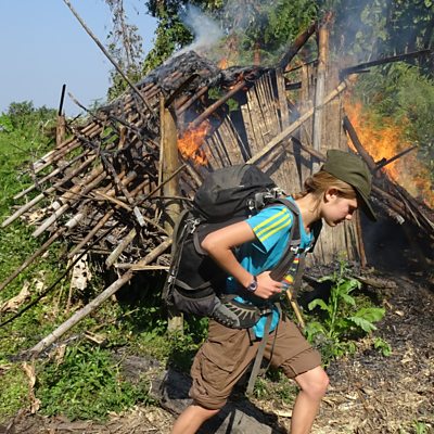 David Eubank, who is originally from Texas, lives in the jungles of the Karen state near the Thai-Myanmar border, along with his wife and children. The Karen people have been fighting the Myanmar military for decades, in the world’s longest civil war. Since the military coup on 1 February, the Karen Nation Union has sided with a people’s uprising demanding democracy is restored, and has launched attacks on the military. The army has responded with bombings that have displaced tens of thousands of people. David has seen first-hand what has happened. Hundreds of young protesters have fled to ethnic areas, including into the area David is working in. His group, The Free Burma Rangers, has provided survival and medical training to some of these young people who want to continue fighting to restore democracy. He is also part of an underground railway helping to smuggle out politicians, artists and activists who are on the military’s wanted list. David takes us on a mission through the jungle to get aid to civilians caught up in the conflict. (Photo: Sahale walks by a burning shack and opium field on a mission. Credit: Free Burma Rangers)