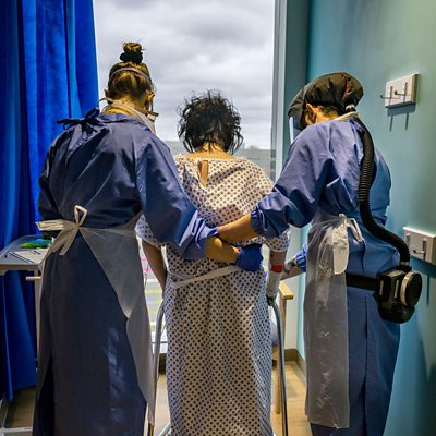 Frontline medical teams in the UK have fine-tuned the physical treatment of severely ill Covid patients. But one thing that has gone largely unnoticed is their efforts to help those patients – often on ventilators for weeks – keep up the will to live, and enable their families to stay connected with these patients. We hear from Dave Collins, who had to say goodbye to his family via Zoom before being put on a ventilator; Paul Twose, a physiotherapist working in critical care, who uses an “About Me” list to make sure that an unconscious patient is treated as an individual; Dr Niki Snook, a consultant in intensive care, who always treats unconscious patients as if they can hear and reads out messages from family members to them; and Tariq Butt, one of Niki’s patients, who was unconscious for 12 weeks. We also witness a reunion between Rehanah Sadiq, a Muslim hospital chaplain, and Sarah Niyazi, whose husband Arif died of Covid-19 in the early weeks of the pandemic. Together they recall how Rehanah created a special Covid-compliant ritual for Sarah and Arif to replace the normal Islamic washing of the body after death. (Photo: Medical staff at Royal Papworth hospital are tending to Covid-19 patients. Credit: Lynsey Addario/Getty Images)