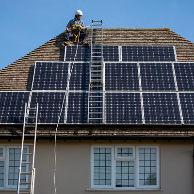 Home solar – putting panels on your roof or side of your house, used be something fairly unusual. However, rising energy costs means that people are increasingly looking for alternatives. Presenter Rick Kelsey explores why the trend for solar panels is happening across Europe – and asks whether the industry has the infrastructure to cope with increasing demand. Rick travels to south east England where panels are being put on the roof, and speaks to installer Scott Burrows. And he meets Linda who rents her home – her landlord has just had solar panels fitted. Linda says she has noticed the reduction in her bills, however her central heating is gas so there might not be as big a reduction over the winter. Just over 3,000 solar installations are being carried out every week according to the trade association Solar Energy UK. That’s up from 1,000 a week in July 2020. Michael Schmela and Naomi Chevillard are from Solar Power Europe. They say they are seeing an unprecedented demand in countries across Europe, especially those that rely on gas. We also hear from a solar project in the Morogoro region of Tanzania, where farmers are using solar to run a farm and a training centre. And David Shukman, the BBCs former climate editor, talks about the affordability of solar panels and how that’s changed over recent years. How much is the demand and payback time for home solar changing? Presented and produced by Rick Kelsey. (Image: Solar panels being fitted on a roof. Credit: Getty)