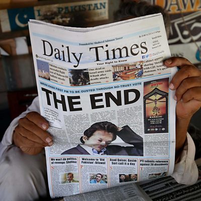 Pascale Harter introduces dispatches from BBC correspondents in Pakistan, Russia, Korea and Belgium. Pakistan has a new Prime Minister after cricketer-turned-politician Imran Khan was removed from power – not in elections, but by a parliamentary vote of no confidence. It marked the culmination of weeks of political drama in the country, and there could be further twists ahead with Khan vowing to resist. Secunder Kermani looks back at his tenure and what went wrong for the former national hero. What do Russians really make of their country’s invasion of Ukraine? It is no easy matter to conduct opinion polls in Russia at the best of times - sampling views from St Petersburg to Siberia is a challenge whatever the rules of the game. Right now though, few Russian people feel entirely free to express their opinions anyway. What they do know – all too well – is that expressing dissent view could cost them their liberty; people who have publicly criticised the war have found themselves locked up. Jenny Hill is in Moscow, and has been keeping her ear to the ground. In South Korea, women’s rights were a critical issue in the recent general election - that is, the issue of rolling them back. The country’s new president elect, the conservative Yoon Suk-yeol, has been labelled an anti-feminist, winning a tight race by targeting the concerns of young male voters, who were said to be anxious about the social progress made by women. Female ambition - and solidarity - will be needed to keep up the fight for equal rights. As she nears the end of her posting to Seoul, Laura Bicker reflects on the stories of fortitude, persistence and bravery she heard from Korean women of all ages. Life has not been much fun for performers during the various phases of Covid lockdown. Musicians had a particularly hard time of it - certainly the ones used to playing in front of sweaty crowds keen on dancing. So when the Belgian rock band, Demisec, were offered their first gig in a year, they jumped at the chance. Their bassist, BBC cameraman Maarten Lernout, did not mind at all that they were being asked to play in a local prison... Producer: Polly Hope Production Co-ordinator: Gemma Ashman (Image: A Pakistani resident reads a newspaper after Prime Minister Imran Khan, lost the vote of no-confidence in the parliament in Pakistan Credit: EPA/Shahzaib Akber)