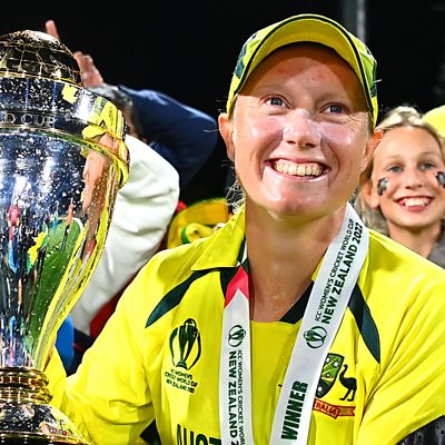 Alison Mitchell, Charu Sharma and Matt Clinch are joined by Australian superstar Alyssa Healy. She currently tops the ICC Women's One Day International player rankings and most recently smashed 170 runs in the World Cup final to help Australia win their seventh World Cup title. She tells us all about that final, how she felt playing her shots and how special it was to play after carrying drinks in the 2013 World Cup. She also tells us about the dominance of Australian cricket, the possibility of a women's Indian Premier League and her family’s influence on her life. We also hear what comes first in her life; cricket, golf, her dogs or her husband... Australian bowler Mitchell Starc. Photo: Alyssa Healy of Australia poses with the World Cup trophy in front of fans after Australia won the 2022 ICC Women's Cricket World Cup Final match between Australia and England in Christchurch, New Zealand. (Credit: Getty Images) Photo: