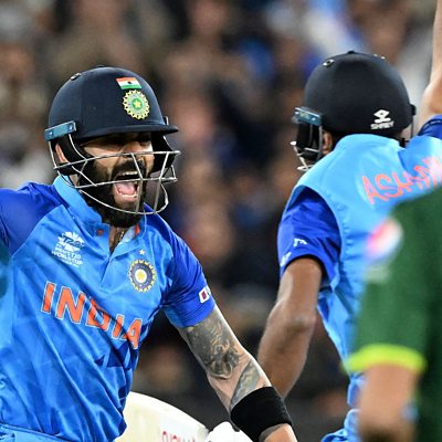 Has there ever been a better T20 match than the one between India and Pakistan? Jim Maxwell reckons it was “the greatest sporting event ever staged on neutral territory”. We'll reflect on the T20 World Cup match that had it all, as India registered another win over their great rivals, thanks to Virat Kohli's brilliance. Alison Mitchell and Charu Sharma also discuss England's shock loss to Ireland, as well as Marcus Stoinis' match-winning knock for Australia. Plus we're joined by the first black cricketer to play for England, Roland Butcher, as we mark the UK's Black History Month. Image: India's Virat Kohli (L) celebrates their win during the ICC men's Twenty20 World Cup 2022 cricket match between India and Pakistan at Melbourne Cricket Ground (MCG) in Melbourne on October 23, 2022. (Photo by WILLIAM WEST/AFP via Getty Images)