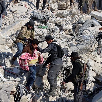 February's earthquake spanned the Turkey-Syria border and refocused international attention on the complicated geopolitics of northern Syria. We hear how the earthquake aid operation presented both challenges and opportunities to the different groups controlling Syria, from the government in Damascus to the rebel leaders of Idlib province. With BBC Monitoring jihadi expert Mina al-Lami and BBC Middle East correspondent Lina Sinjab. The handwritten newspaper of Bangladesh Since 2019, a handwritten newspaper has been published by a group of day labourers in southern Bangladesh. It aims to inspire others with stories of ordinary villagers who have overcome struggles and hardships, as BBC Bengali's Nagib Bahar reports. Venezuela: 10 years after the death of Hugo Chavez Venezuelans have been marking the tenth anniversary of the death of former president Hugo Chavez, one of the most controversial, charismatic and influential politicians in Latin American history. As a child, teenager and then young reporter, BBC Mundo’s Jorge Perez witnessed some of the key moments of Chavez’s rule. Searching for gems of hope For four decades local people have been mining semi-precious stones in the mountainous Chumar Bakhoor area of Gilgit-Baltistan in northern Pakistan. BBC Urdu’s Musa Yawari travelled into the mountains to meet the miners as they brave hazardous conditions hoping to make their fortunes. (Photo: A man in Idlib province carrying the body of a child after the Turkey-Syria earthquake. Credit: Mohammed Al-Rifai/AFP via Getty images)