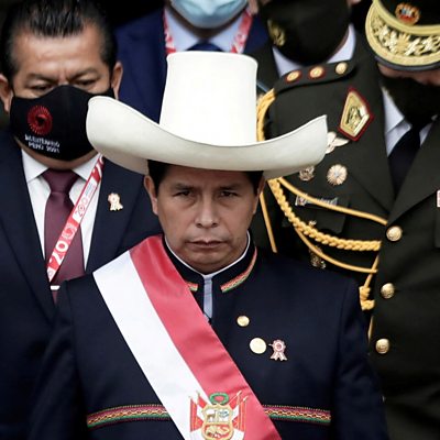 On the 7th December 2022, President Pedro Castillo attempted to dissolve Peru's Congress. His attempted self-coup ended almost as quickly as it began, having been denounced by his own party, the military and the police. He was arrested as he tried to make his way to Mexico, and currently awaits trial. His running mate and vice president, Dina Boluarte, has assumed power in his stead. However, prior to Castillo’s attempt to gain complete control, Boluarte had already been expelled from the party, after publicly rejecting its ideology, and defected to the opposition. This has left Peruvians angry, especially as she originally intended to see out the rest of the term until 2026. Thousands of disillusioned Peruvians gathered in protest all over the country, at first demanding the release of Castillo, and latterly, for the resignation of Presidential Boluarte and constitutional reform. They have been met by a fierce and brutal response. At least 60 Peruvians have lost their lives in the protests, and a further 1000 or more have suffered injury. Still the protests continue. Can Peru sort out its political problems? Presenter: Charmaine Cozier Producer: Christopher Blake Researcher: John Cossee Editor: Tara McDermott Production Co-ordinator: Brenda Brown Image: Peru's President Pedro Castillo after his swearing-in ceremony in Lima, Peru, 28 July 2021. (Credit: Reuters/Angela Ponce)