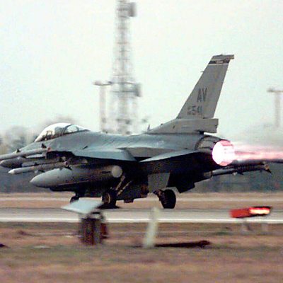 When war broke out in Kosovo in 1998, Nato intervened with air strikes to prevent atrocities by Serbian forces. The late Madeleine Albright was then the US Secretary of State and the main proponent of action. In 2018, she explained to Rebecca Kesby why she argued for military intervention, and how it was motivated, in part, by her family's experiences as Jews in Czechoslovakia during World War Two. PHOTO: An F-16 jet at Nato's Aviano base in Italy during the air strikes on Kosovo (Getty Images)