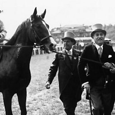 A few days after Queen Elizabeth II was crowned, she had her best chance of owning the winner of the Derby, but first the horse would have to beat the British public’s favourite jockey. Peter O’Sullevan talked to Julian Bedford in this programme first broadcast in 2012. (Photo: Champion jockey Sir Gordon Richards being led in after winning the Coronation Derby on 'Pinza'. Credit: Fox Photos/Getty Images)