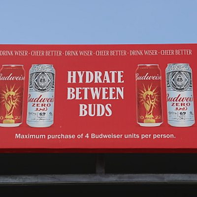 Alcohol will not be sold to fans at the World Cup's eight stadiums in Qatar after Fifa changed its policy two days before the start of the tournament. But what does it mean for its main sponsor, the American beer giant Budweiser? (Image: DOHA, QATAR - NOVEMBER 18: A sign over a Budweiser beer stand at Fan Festival ahead of the FIFA World Cup Qatar 2022 at Fan Festival Al Bidda Park on November 18, 2022 in Doha, Qatar. Image Credit: Getty Images).