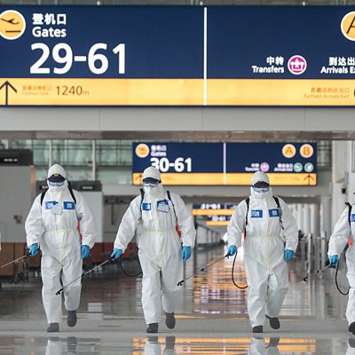 China has announced it will drop international travel restrictions after almost three years, prompting a surge in Chinese citizens booking overseas trips. That's despite reports of hospitals 'overflowing' with Covid cases. We'll have the latest on Russia's decision to ban oil sales to countries which adopted a price cap. It's also Crypto Week here at World Business Report; and following the demise of FTX earlier this year, we're looking at the thorny issue of regulation. (Picture: Government staff disinfect an airport in Wuhan. Credit: Getty Images.)