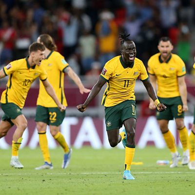 Australia's Aziz Behich reflects on a famous night for the Socceroos as they secured World Cup qualification with a win over Peru. The former South African international Matthew Booth discusses youth development problems in the country. Plus, Heather O'Reilly returns after playing a UNICEF charity match with some of the biggest names in football. Picture on website: Australia players celebrate their sides victory after a penalty shoot out following the 2022 FIFA World Cup Playoff match between Australia and Peru (Mohamed Farag/Getty Images).
