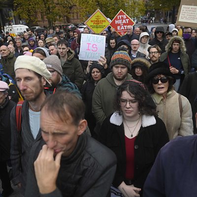 Faisal Islam discusses the cost of living crisis sweeping across Europe. Can economies cope, or is this the end of globalisation - and, if so, what next? Steve Rosenberg analyses how bad the war has made life for ordinary Russians. Maddy Savage explains why crime is top of the agenda in the upcoming Swedish elections. Murad Shishani from BBC Arabic examines the political deadlock and ongoing tensions in Iraq, and Becky Morelle looks at the science and inspiration behind Nasa's revival of its moon ambitions. (Photo: People in Belfast protest against rising energy bills and the cost of living crisis. Credit: Mark Marlow / PA Wire)