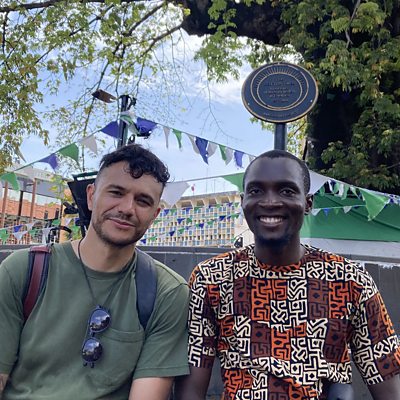An astonishing series of documents in Sierra Leone named the Registers of Liberated Africans record details of Africans freed from slavery by the British Royal Navy in the 19th Century. There is one entry in the registers that simply says 'Recaptive Number 11,407, without name, deaf and dumb'. In this documentary mixing poetry and new historical research, award-winning deaf poet Raymond Antrobus goes on a personal journey to Sierra Leone to trace a piece of forgotten history and try to find out what became of this deaf man without a name. Producer: Ant Adeane Editor: Damon Rose Historical consultants: Suzanne Schwarz, professor of history, University of Worcester and Henry Lovejoy, associate professor of African diaspora, University of Colorado Boulder. (Photo: Raymond Antrobus (L) and Bosedeh George (R) sitting in front of the Cotton Tree)
