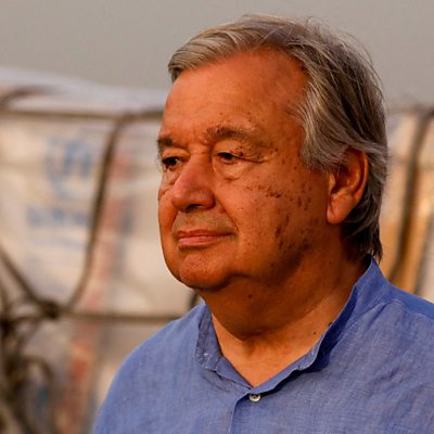 Justin Rowlatt puts your global climate questions to UN Secretary General António Guterres. Image: UN Secretary General António Guterres in Karachi, 10 September 2022 (Credit: Akhtar Soomro/Reuters)