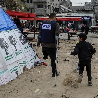 Pascale Harter presents dispatches from Israel-Gaza, Colombia and Australia. International media have been campaigning to gain access to Gaza in the months since the Israeli bombardment began. Only occasional access has been granted, which is closely supervised by the Israeli military. More often, news organisations have relied on Palestinian journalists already living and working in Gaza, who continue to operate under dangerous conditions. Jeremy Bowen reflects on the difficulties of telling the story of the Israel-Gaza war. Going from armed rebel to eco-tourist guide might seem a drastic career change - but it's a path some former guerrilla fighters in Colombia are keen to take. Zoe Gelber talked to some demobilised former members of the FARC movement who hope to make a more peaceful living guiding travellers through the rainforests they once fought in. A convenience store in Sydney, Australia, offers more than the usual variety of groceries. Amongst the tinned tomatoes and toiletries is a full-size, working Airbus A320 flight simulator - so you can learn to pilot a plane while picking up a pint of milk. Eleanor Smallwood has been to meet the man behind the machine. (Images: Gazan journalist continues journalism despite having one leg amputated. Credit: Abed Rahim Khatib/Anadolu via Getty Images)