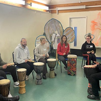 Since early times, the drum has been part of human society. But have you ever considered how drumming might actually improve our physical and mental health? Researchers from the University of Essex are at this year’s annual Royal Society’s Summer Exhibition in London to talk to the public about their work which shows drumming during a rock concert might give you a similar workout as playing football. Along with the BBC’s health and science correspondent, James Gallagher, Claudia Hammond gets a drumming lesson. They also hear how specially designed audio is being used in virtual reality gaming to train the brains of people with hearing impairments. How micro-robots may provide the future of intricate eye surgery. And how laser technology currently being deployed by the Mars Rover could revolutionise the way we screen our bodies for diseases. Presenter: Claudia Hammond Producer: Erika Wright (Photo: Drumming workshop plus drumming teacher Richard Davis)