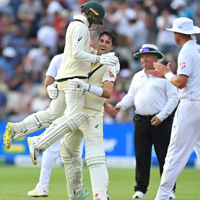 Alison Mitchell, Jim Maxwell and Charu Sharma discuss the drama of the first Ashes Test at Edgbaston - from Ben Stokes’ shock first-innings declaration, to Pat Cummins’ match winning performance with the bat to what’s next for England’s bowlers. Plus Australia’s Usman Khawaja tells Alison Mitchell just what it was like being in the away dressing room when Cummins’ scored the winning run. And with the Women's Ashes series underway, we hear from former England cricketer Katherine Sciver Brunt on what the sporting rivalry means to her and she calls for a worldwide effort to ensure international cricket thrives. (Photo: Australia batsmen Nathan Lyon (l) and Pat Cummins celebrates after winning the match during day five of the LV= Insurance Ashes 1st Test Match between England and Australia at Edgbaston on June 20, 2023 in Birmingham, England. Credit: Stu Forster/Getty Images)