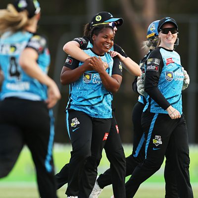 Alison Mitchell, Jim Maxwell and Charu Sharma are joined by Zimbabwe’s Anesu Mushangwe who has just won the Women's Big Bash League with the Adelaide Strikers. She became the first player from Zimbabwe to win the title and tells us how she learnt how to bowl throwing lemons. Anesu details her journey from growing up in Zimbabwe and falling in love with cricket, to moving to Australia and playing with her idols and all the obstacles in-between. The team discuss the row that has broken out in Australia with former bowler Mitchell Johnson questioning whether former team-mate David Warner should be given a "hero's send-off" in the Test series against Pakistan. They debate Johnson's comments and assess Warner's global profile. Stumped has been nominated for Best Cricket Podcast in the Sports Podcast awards – go to sportspodcastgroup.com to vote. Photo: Anesu Mushangwe of the Strikers celebrates with team-mates after taking the wicket of Tahlia Wilson of the Thunder during the WBBL match between Sydney Thunder and Adelaide Strikers at Cricket Central, on November 21, 2023, in Sydney, Australia. (Credit: Getty Images)