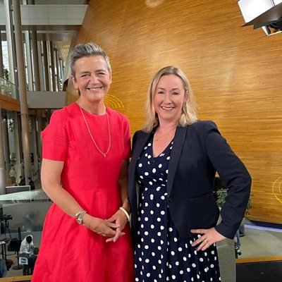 This week Zoe Kleinman travels to Strasbourg, France to meet Margrethe Vestager, the woman leading the EU's attempts to regulate AI. Reporter Tom Gerken has been following the protest has caused Reddit to effectively fall silent. Chris Vallance meets the team trying out 3D printing as a way to rebuild schools destroyed in the war in the Ukraine. And Amazon tell us what they're doing to combat fake online reviews - and we ask a consumer group to review their initiative. (PHOTO: Margrethe Vestager and Zoe Kleinman at the European parliament, Strasbourg, France, copyright BBC).
