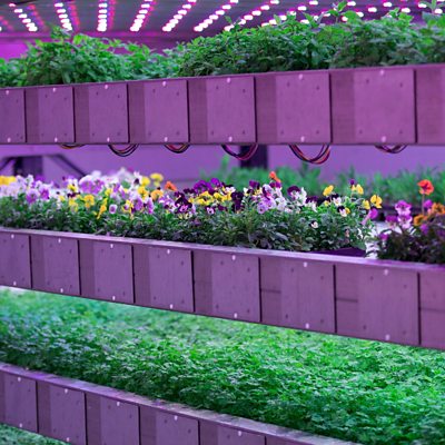 Alasdair Keane is on a farm with a difference exploring the tech helping farmers adapt to changing climates. We'll hear from startups tyring to improve how crops are watered and analysing moisture data from space. We also find out how one ice cream company is warming their freezers without the ice cream melting. (Picture: Inside IGS vertical farm)