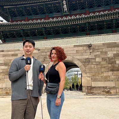 The Fifth Floor visits the BBC's Seoul Bureau to meet the journalists working for BBC Korean, serving audiences across the whole of the Korean peninsula, with different output for both North and South Korea. Journalists David Oh, Hyunjung Kim and Yuna Ku talk about the stories they've been working on for the domestic audience, from the growing global interest in Korean popular culture to what divides, and unites, Koreans. They also broadcast a daily radio programme to North Korea. Editor Woongbee Lee and journalist Rachel Lee explain how they keep this largely unknown audience informed about worldwide news, as well as stories about their own country unreported by their state broadcasters. And on the first anniversary of the Itaewon Halloween tragedy in which 159 people became trapped in huge crowds and died, unable to breathe, we hear from Jungmin Choi who filmed on the scene in the days after the disaster, and Yuna Ku, who is working on stories to mark the anniversary, about the victims' families' fight for justice. (Photo: Faranak Amidi and BBC Korean editor Woongbee Lee in central Seoul. Credit: BBC)