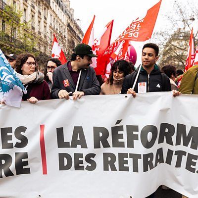 Recent protests in France oppose plans to raise the retirement age from 62 to 64. The demonstrations stem from a government plan so people would work -and pay into the pension system - for longer. There’s also concern about what that change might mean for those who are many decades away from pension age. France isn’t the only country facing economic efficiency challenges as populations age and leave the labour market. As more people leave Europe’s labour market, will young workers have to pay for the old? The Inquiry hears also about the productivity challenges facing Spain and Germany. Anne Elizabeth Moutet is a French columnist for the Daily Telegraph newspaper Bart Van Ark , Professor of productivity studies at the University of Manchester Prof Marcel Jansen, an economist from the Autonomous University of Madrid Stefano Scarpetta is Director for Employment, Labour and Social Affairs at the OECD Presenter Charmaine Cozier (Protesters at the rally against Macron's pension reform, Paris, France. Credit: Telmo Pinto/Getty Images)