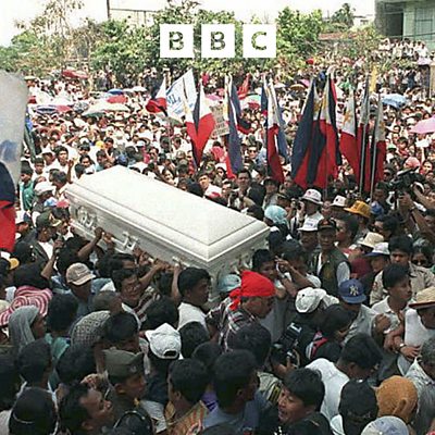 In 1995, the execution of Flor Contemplacion caused protests, a government resignation and a diplomatic crisis between the Philippines and Singapore. Flor, who worked in Singapore, was convicted of killing another domestic helper, Delia Maga, and the four-year-old boy Delia looked after, Nicholas Huang. While Singapore stood by the conviction, millions of Filipinos believed Flor was innocent and had been let down by their government as an overseas worker. Flor’s daughter Russel Contemplacion, who was 17 at the time, and Flor's lawyer Edre Olalia give Josephine McDermott their account. (Photo: The coffin of Flor Contemplacion is carried to church prior to her funeral. Credit: Getty Images)