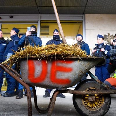 Farmers in Poland and Hungary are the latest to begin protesting over cheap produce flooding in from Ukraine. Elsewhere in Europe the complaints continue over pesticide use and costs; we bring you the latest. Global cocoa prices have hit a fresh record high as dry weather hurts crops in West Africa. We hear from a cocoa grower in the Ivory Coast. Rahul Tandon also hears from Tim Draper - one of the funders of Nikki Haley's Presidential campaign - about why he backs the former US Ambassador to the UN's attempt to take the Republican nomination. (Photo: A wheelbarrow full of hay with the letters UE written on the side panel. Credit: Jakub Kaczmarczyk/EPA-EFE/REX/Shutterstock)