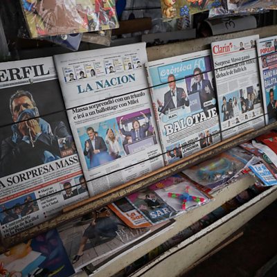 The first round of voting in the presidential election took place at the weekend with the populist candidate Javier Milei, who brandished a chainsaw at one event, unexpectedly beaten. His rival, the country's current economy minister Sergio Massa came out on top. Rahul Tandon finds out what the result might mean for the future of the country's economy, where inflation is more than 130 percent. (Picture: Newspapers are displayed at a kiosk a day after the first round of Argentina's presidential election, in Buenos Aires, Argentina October 23, 2023. Credit: REUTERS/Cristina Sille)