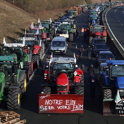 Farmers in and around Paris have been using tractors to block roads in and out of the city in a so-called siege of the French capital. They claim red tape and environmental policies are affecting their bottom line and want to stop food deliveries to supermarkets. The Chinese property giant Evergrande has been ordered to liquidate by a court in Hong Kong. The developer has more than 1,300 projects in more than 280 cities in China, but it also has debts of over $300 billion. Concerns continue over the impact of Houthi attacks on Red Sea shipping. Hapag Lloyd, which is one of the world's largest shipping companies, recently announced a 'land bridge' through Saudi Arabia for its clients. We ask how viable this is. (Picture:Farmers protest over price pressures, taxes, and green regulation in Beauvais. Credit: REUTERS/Stephanie Lecocq)