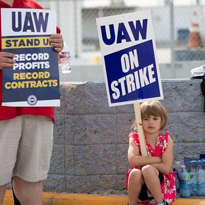 Union negotiators continued talks with representatives from General Motors, Ford and the Jeep-maker Stellantis today, as a historic strike by workers at America's top three car manufacturers entered the fourth day. The United Auto Workers union is seeking a 40% pay rise over a four year term, far more than the roughly 20% the companies have currently put on the table. (Picture: United Auto Workers Hold Limited Strikes As Contract Negotiations Expire. Picture credit: Getty Images)
