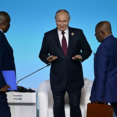 Russian President Vladimir Putin has told a summit of African leaders in St Petersburg that Russia will send thousands of tonnes of free grain within months. Secure food supplies have been a major worry since the invasion of Ukraine. The European Central Bank has raised interest rates to a record level last seen in two-thousand-and-one. The key rate was increased by a quarter of a percentage point. And, this Sunday’s Belgian Formula 1 Grand Prix at the historic Spa-Francorchamps circuit could be the last. (Picture: Russian President Vladimir Putin attending the plenary session of the second Russia-Africa summit in Saint Petersburg. Image source: Getty Images)
