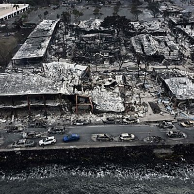 As Hawaii tries to deal with a catastrophic wildfire that has taken 36 lives, we hear how the tourism industry there is trying to evacuate and protect staff and visitors. (Picture: An aerial image taken on August 10, 2023 shows destroyed buildings on the waterfront burned to the ground in Lahaina in the aftermath of wildfires in western Maui, Hawaii. Picture Credit: Getty Images).