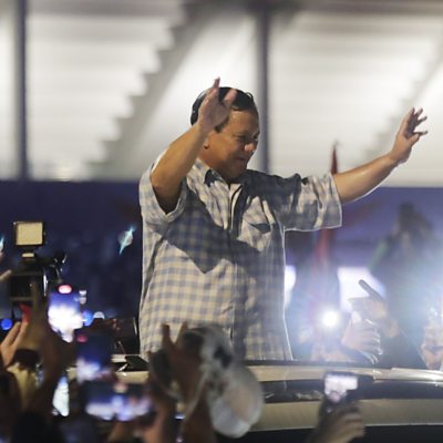 Independent pollsters predict victory for current Defence Minister General Prabowo Subianto in the Indonesian General Election. Polls closed on Wednesday in the South East Asian country that has 205 million voters. The European Union is preparing sanctions on companies in China and India that it accuses of illegally trading with Russia. And we hear how Paris’ booksellers have fought off plans to remove them from the banks of The Seine during the 2024 Olympic Games. Photo by ADI WEDA/EPA-EFE/REX/Shutterstock (14346713cf)