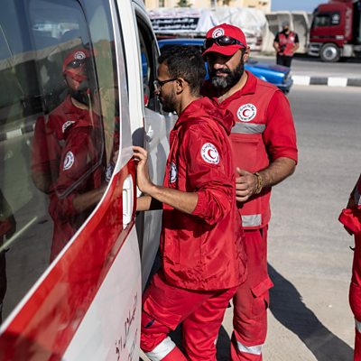 International aid agencies are waiting to get full details of the opening of Egyptian border with Gaza for aid delivery to the strip after 10 days war. The US president Joe Biden has announced that Egyptian President Abdel Fattah al-Sisi has agreed to open the Rafah crossing to a handful of trucks loaded with aid destined for the Gaza Strip. We will hear from The International Federation of Red Cross and Red Crescent Societies about they are ready to deliver this aid to the people who need it. (Photo: Egyptian Red Crescent members wait alongside aid convoy trucks near the North Sinai in Egypt on October 15, 2023. The aid convoy, organized by a group of Egyptian NGOs, set off today from Cairo for the Gaza-Egypt border crossing at Rafah. Picture source: Mahmoud Khaled/Getty Images)