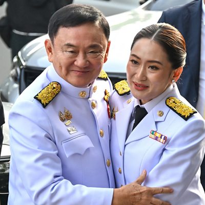 Pascale Harter introduces stories from Thailand, Senegal, Germany and the United States. Once Thailand was riven by the rivalry between the "red shirts" - supporters of deposed Prime Minister Thaksin Shinawatra - and the royalist, pro-military, "yellow shirts". But in 2024 the political landscape has changed: Shinawatra's party is now in power and its rival Move Forward the target for legal action. Still, says Jonathan Head, recent events in Bangkok show one constant: the enduring power of the constitutional court to limit elected governments. The Great Green Wall - a giant belt of newly-planted trees spanning the African continent, from Senegal in the west to Djibouti in the east - was one of the most ambitious plans of the century. It hoped to reforest a vast swathe of land, provide millions of jobs and save thousands of communities from desertification. But is it working? Nick Hunt met the people trying to nurture fragile hope - and thousands of seedlings - for the project, in the village of Linguere. During the 1970s, the Baader Meinhof gang terrorised what was then West Germany, with a string of bombings, kidnappings, assassinations and armed robberies. Its members called themselves the Red Army Faction and said they were fighting for freedom - while police tried to track them down, without success. After the fall of the Berlin Wall, the group went to ground, and lived in hiding for years on end. Tim Mansel went on the trail of two people allegedly involved. And in Washington DC, one correspondent looks beyond the opinion polls to another indicator of public enthusiasm in the American presidential contest: election-themed memorabilia. From baseball caps to bobble-head dolls - not to mention the lurid political T-shirts - how much do the collectibles on sale mirror the people's passions? Producer: Polly Hope Editor: Tom Bigwood Production Co-ordination: Katie Morrison (Image: Thailand Prime Minister-elect Paetongtarn Shinawatra and her father, former PM Thaksin Shinawatra, at a royal endorsement ceremony in Bangkok. Credit: REUTERS/Panumas Sanguanwong)
