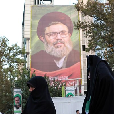 This week John Simpson, in discussion with the BBC's unparalleled range of experts across the world, analyses how the Iranian regime might respond to Israel’s attack on the country, examines the role of disinformation in the US Presidential election and looks at whether a rape trial in Provence will change French society. (Photo: Iranian women walk in front of a large poster of late head of Hezbollah's executive council Hashem Safieddine as they take part in an anti-Israel protest rally at the Palestine Square in Tehran, Iran, 24 October 2024. Credit: ABEDIN TAHERKENAREH/EPA-EFE/REX/Shutterstock)