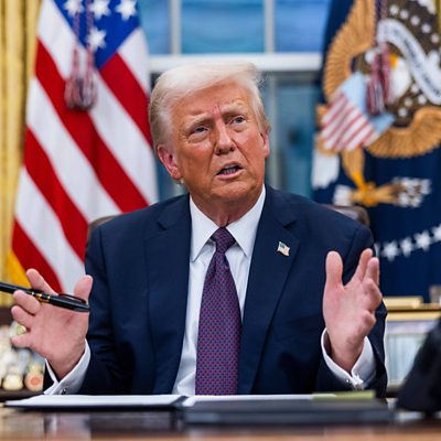 John Simpson, in discussion with the BBC's unparalleled range of experts across the world, examines Donald Trump’s first few weeks in office, analyses whether the United States is going to start a trade war, and looks at how Mexico is dealing with the new administration in Washington. (Photo: President Donald Trump. Credit: Jim Lo Scalzo/EPA)