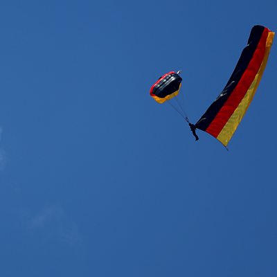Germany's post-Covid recovery has not gone as planned, according to a damning new report by the country's commerce chamber. Elsewhere, Roger Hearing looks at news reports that the US is planning to sue Ticketmaster-owner Live Nation over anti-competitive practices. And we look inside the first state visit by an African leader to the US in over 15 years. (Photo: A paratrooper parachutes with a German flag. Credit: Reuters)