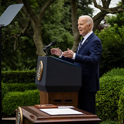 Presenter Sam Fenwick assesses the impact of US tariffs on Chinese goods. Joe Biden is putting them on imports, including electric cars and semiconductors. We hear from the business community in Georgia worried a new law will put off foreign trade. It requires organisations which receive more than 20 per cent of funding from abroad to declare themselves as illegal. We examine sports betting in the US after states were allowed to legalise the industry. Betting on sports is part of the sports fan experience in many countries around the world but it's a relatively new thing in the US. (Picture: President Joe Biden speaks during an event at the White House Credit: Mandatory Credit: Photo by Samuel Corum/POOL/EPA-EFE/REX/Shutterstock)